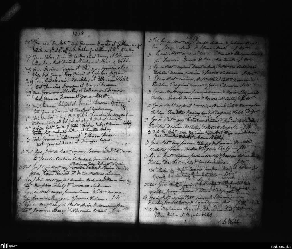 Clonakilty; County of Cork; Diocese of Cork and Ross. Marriages, Jan. 1818 to Apr. 1818