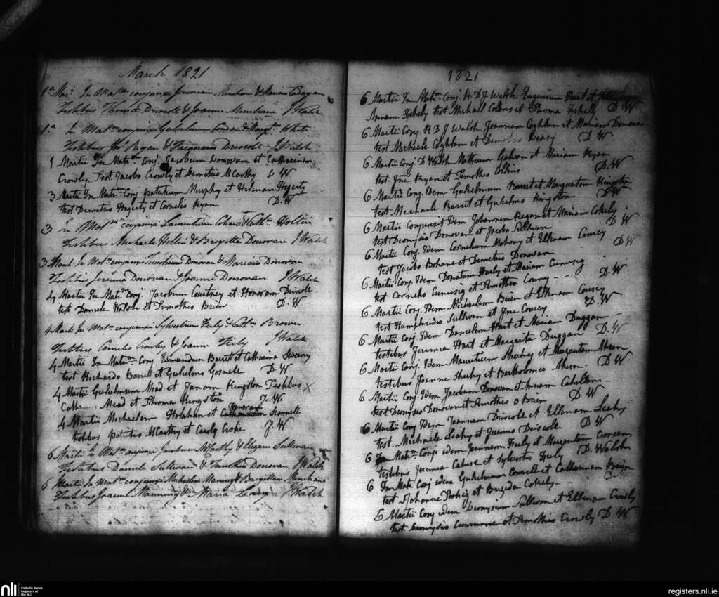 Clonakilty; County of Cork; Diocese of Cork and Ross. Marriages, Mar. 1821