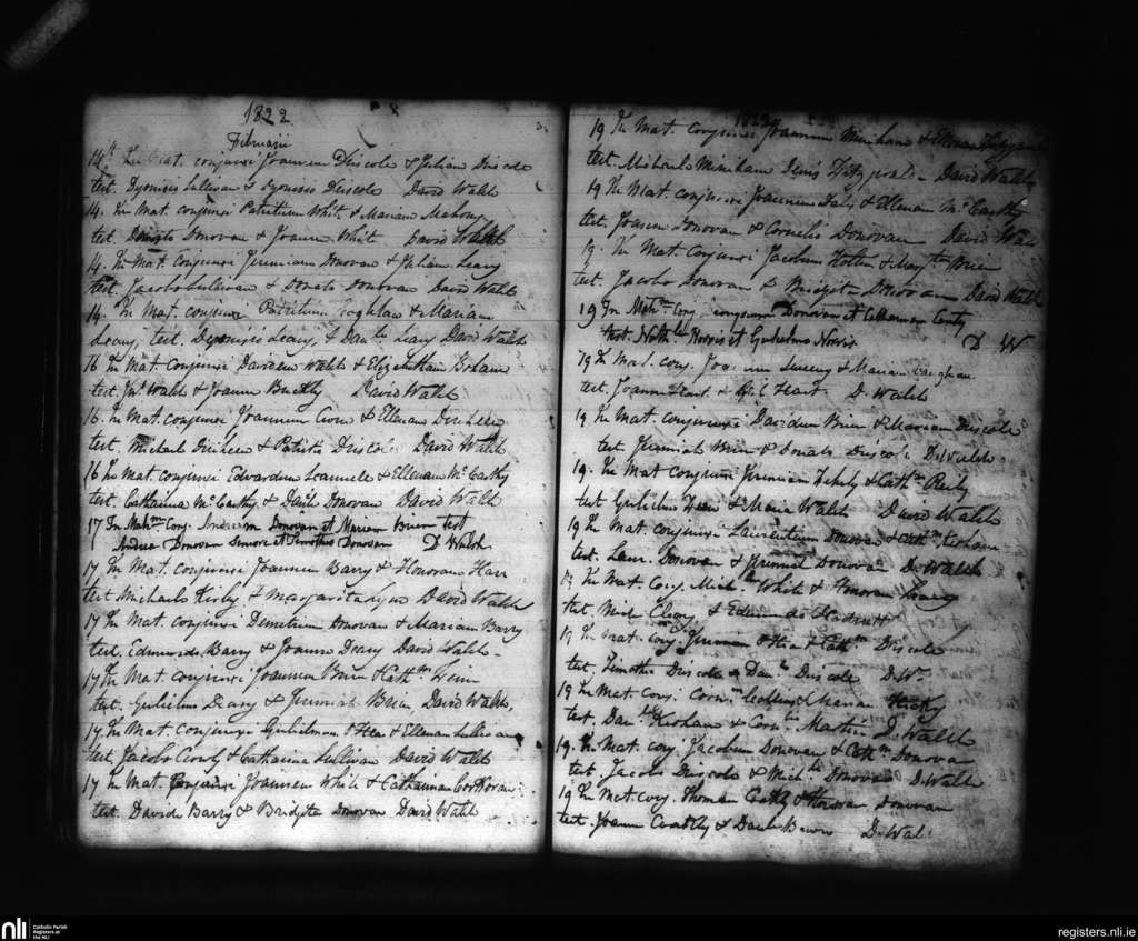 Clonakilty; County of Cork; Diocese of Cork and Ross. Marriages, Feb. 1822