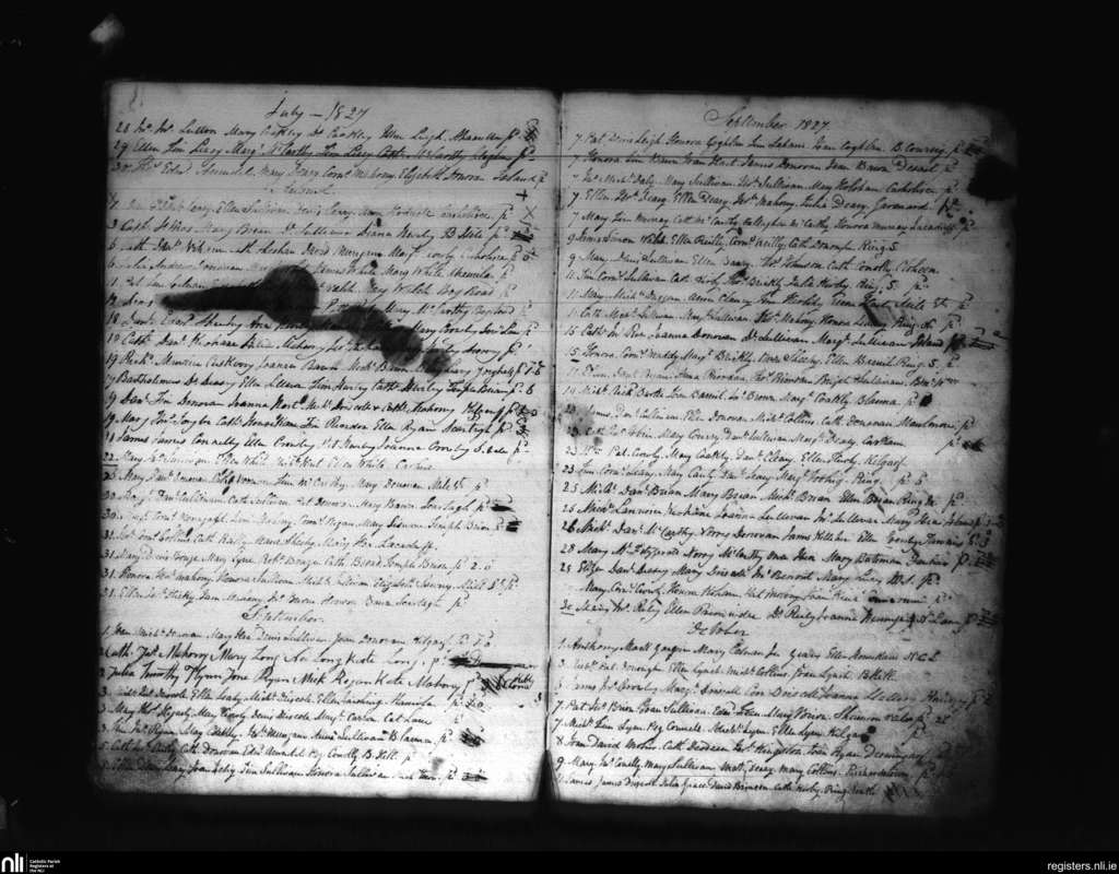 Clonakilty; County of Cork; Diocese of Cork and Ross. Baptisms, July 1827 to Oct. 1827