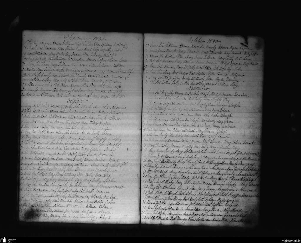 Clonakilty; County of Cork; Diocese of Cork and Ross. Baptisms, Sep. 1830 to Nov. 1830