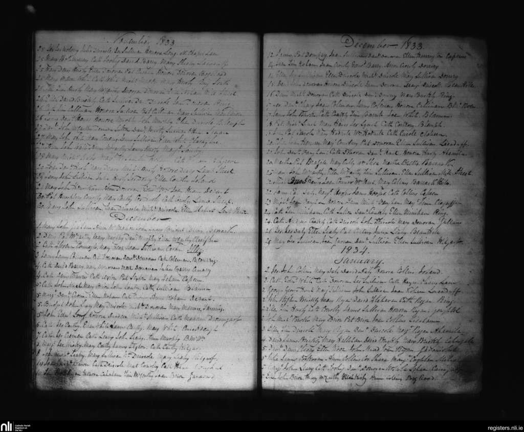 Clonakilty; County of Cork; Diocese of Cork and Ross. Baptisms, Nov. 1833 to Jan. 1834