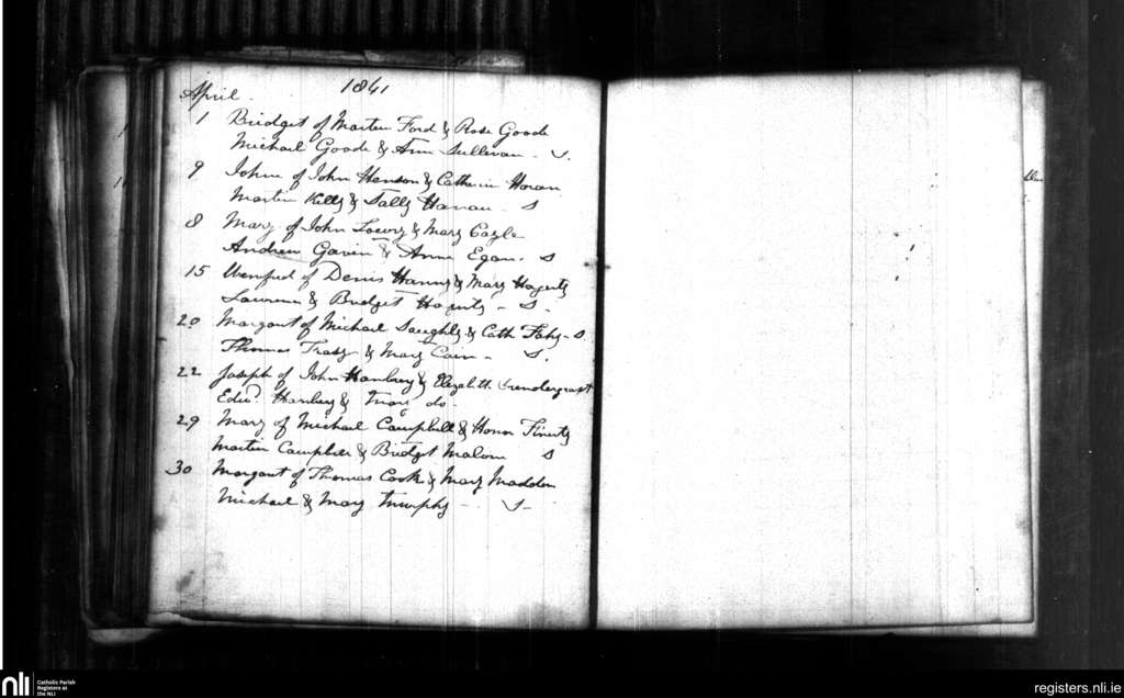 Killimore and Tiranascragh; County of Galway; Diocese of Clonfert. Baptisms, Apr. 1841