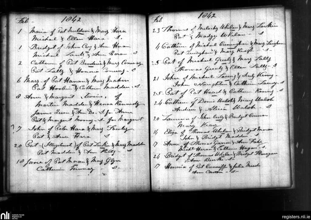 Killimore and Tiranascragh; County of Galway; Diocese of Clonfert. Baptisms, Feb. 1842