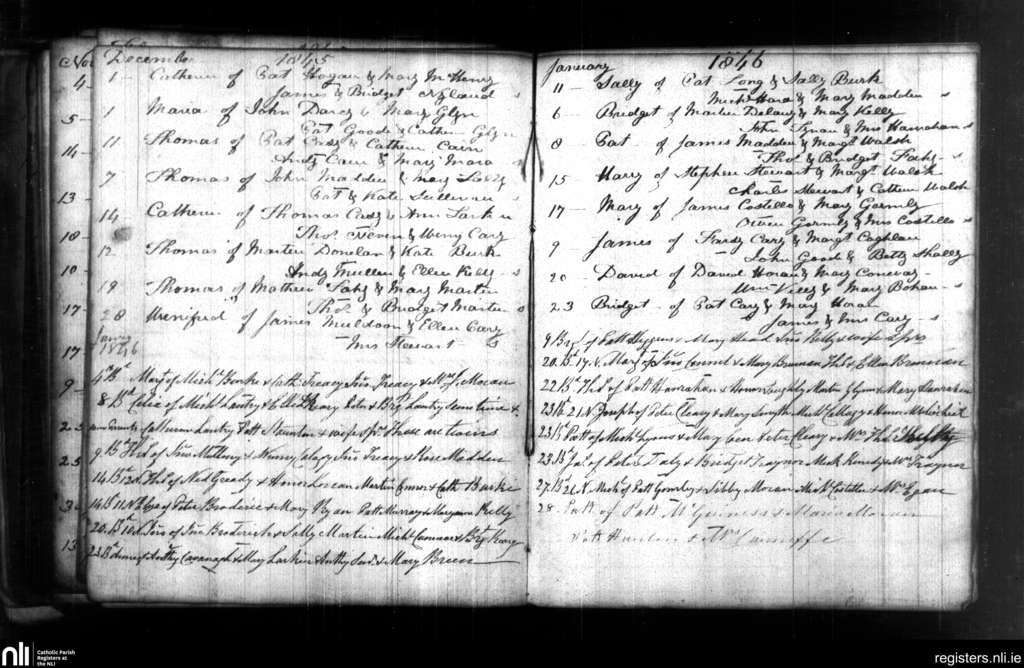Killimore and Tiranascragh; County of Galway; Diocese of Clonfert. Baptisms, Dec. 1845 to Jan. 1846