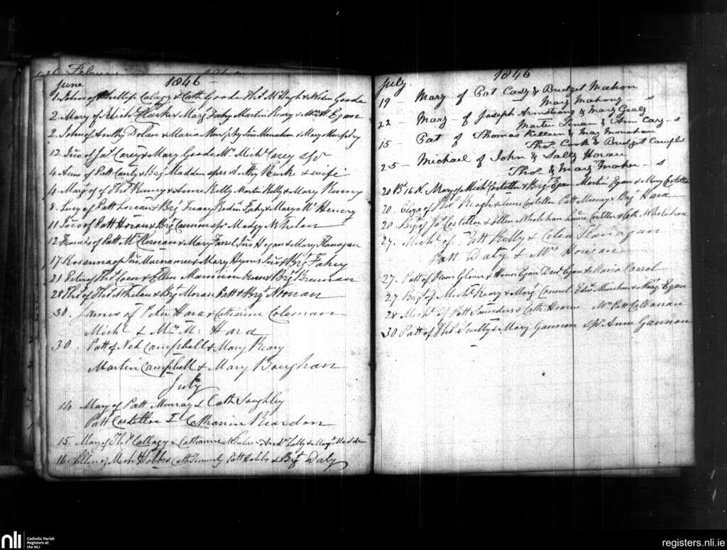 Killimore and Tiranascragh; County of Galway; Diocese of Clonfert. Baptisms, June 1846 to July 1846