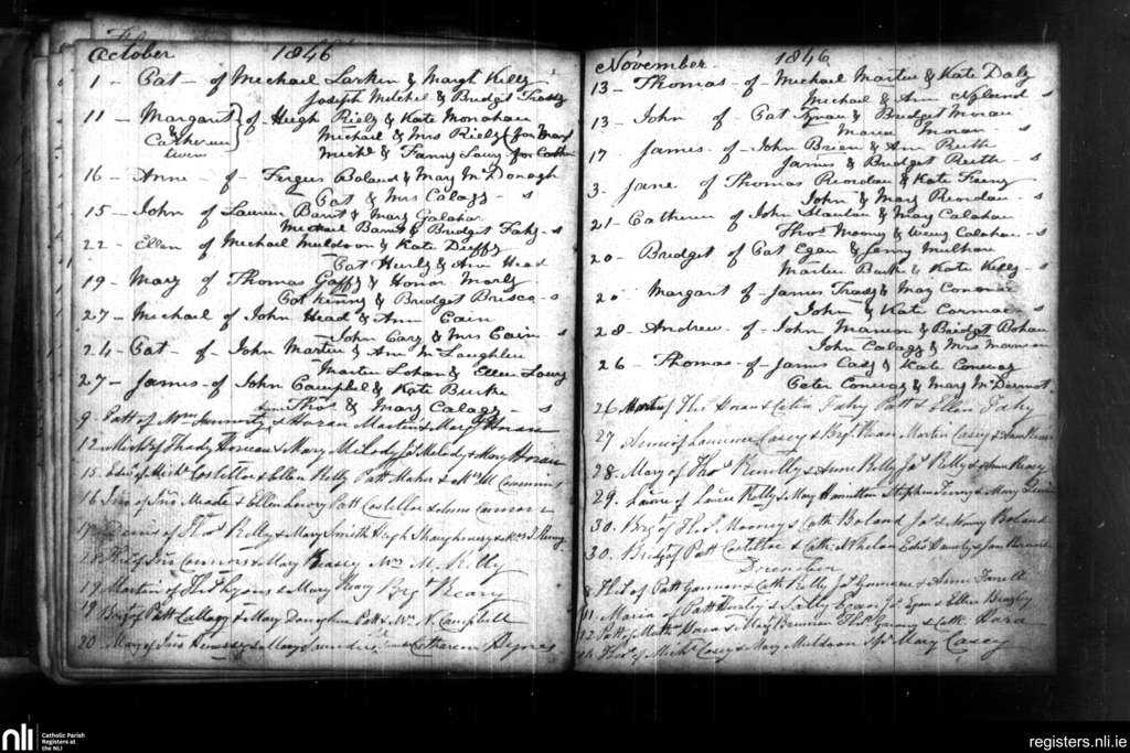 Killimore and Tiranascragh; County of Galway; Diocese of Clonfert. Baptisms, Oct. 1846 to Dec. 1846