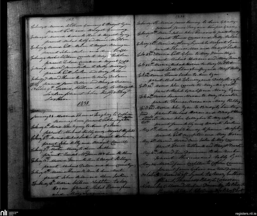 Lusmagh; County of Offaly; Diocese of Clonfert. Marriages, Feb. 1837 to Nov. 1838
