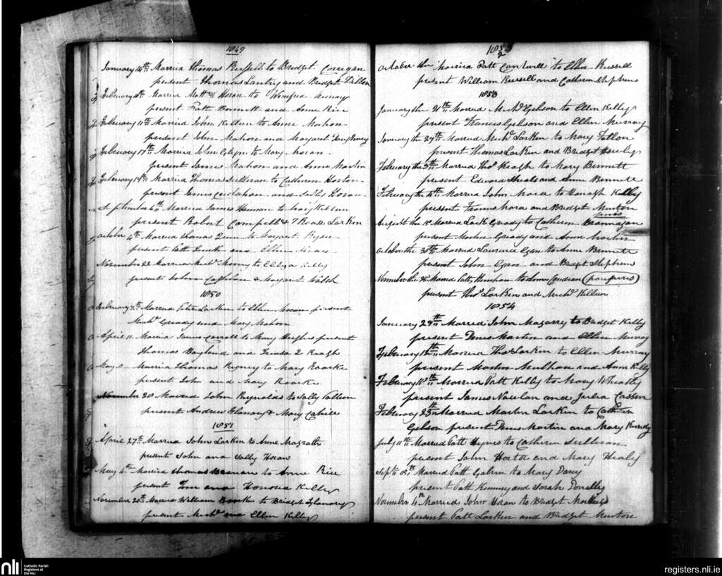 Lusmagh; County of Offaly; Diocese of Clonfert. Marriages, Jan. 1849 to Nov. 1854