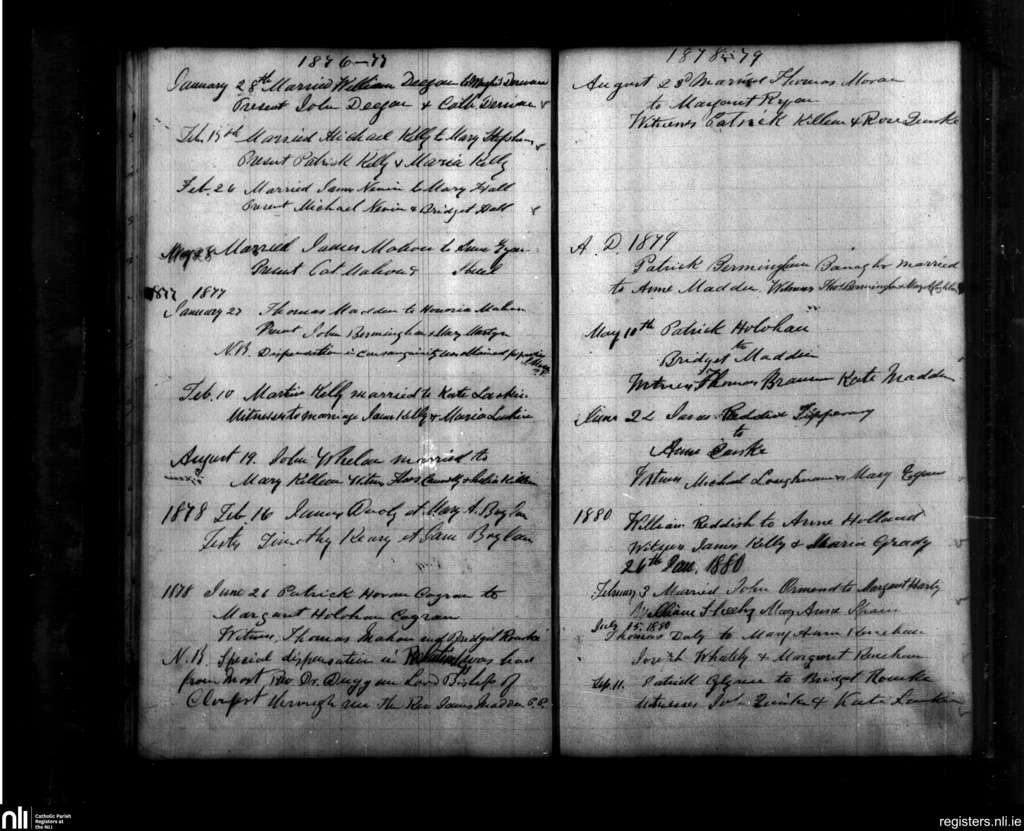 Lusmagh; County of Offaly; Diocese of Clonfert. Marriages, Jan. 1876 to Sep. 1880