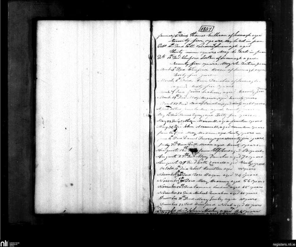 Lusmagh; County of Offaly; Diocese of Clonfert. Burials, Jan. 1837 to Dec. 1837