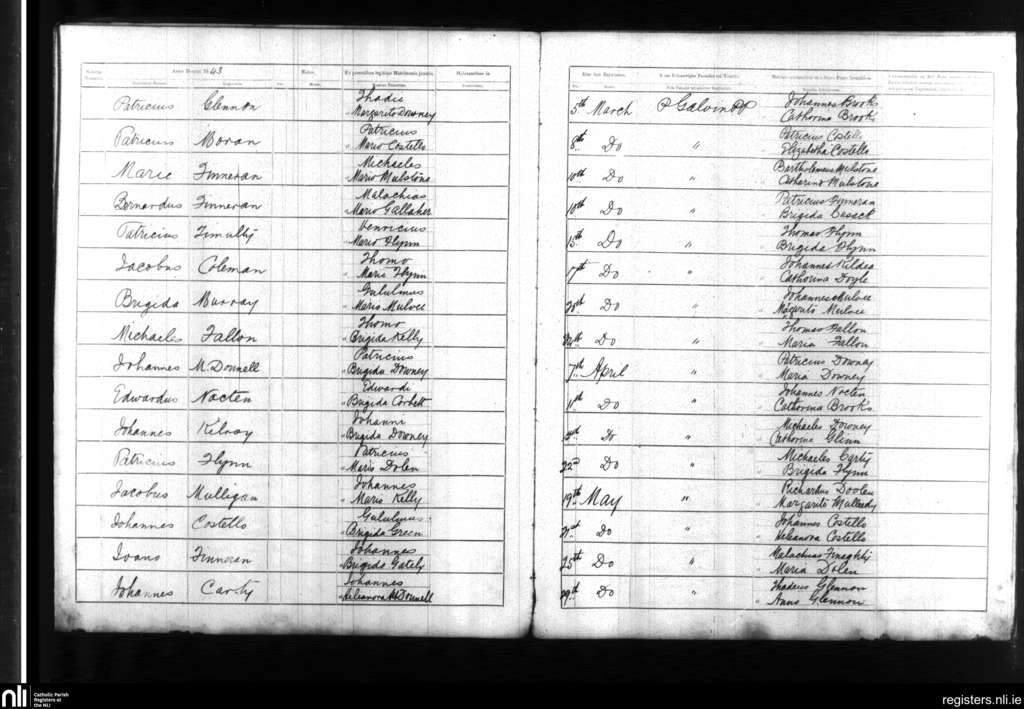 Taughmaconnell; County of Roscommon; Diocese of Clonfert. Baptisms, Mar. 1843 to May 1843