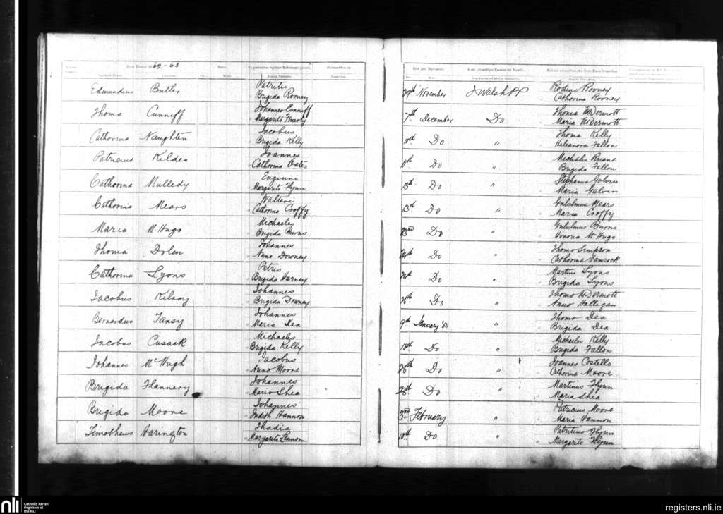 Taughmaconnell; County of Roscommon; Diocese of Clonfert. Baptisms, Nov. 1862 to Feb. 1863