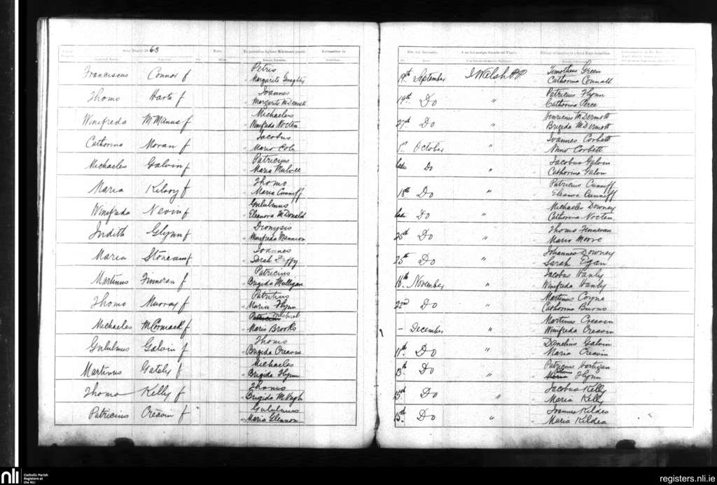 Taughmaconnell; County of Roscommon; Diocese of Clonfert. Baptisms, Sep. 1863 to Dec. 1863