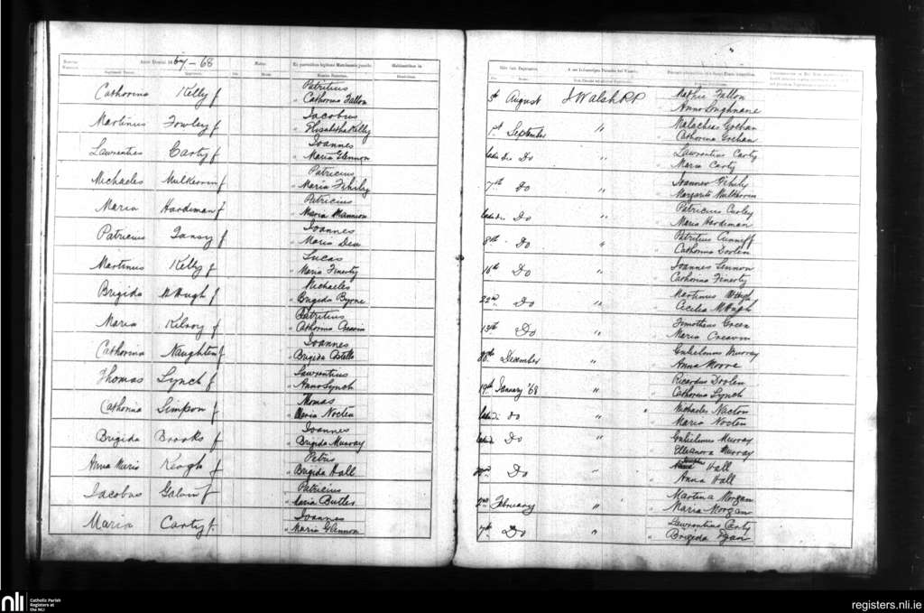 Taughmaconnell; County of Roscommon; Diocese of Clonfert. Baptisms, Aug. 1867 to Feb. 1868