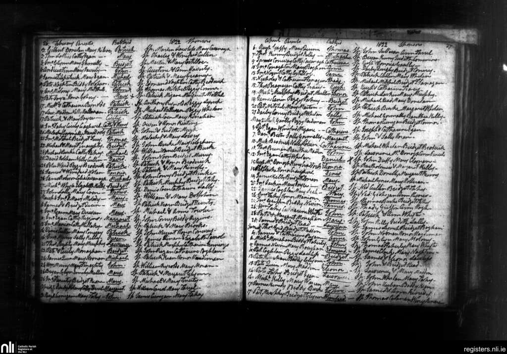 Tynagh; County of Galway; Diocese of Clonfert. Baptisms, Feb. 1822 to June 1822