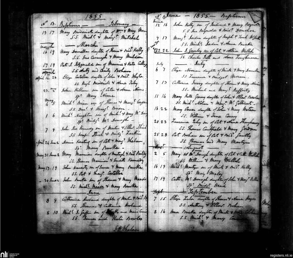 Tynagh; County of Galway; Diocese of Clonfert. Baptisms, Feb. 1855 to Sep. 1855