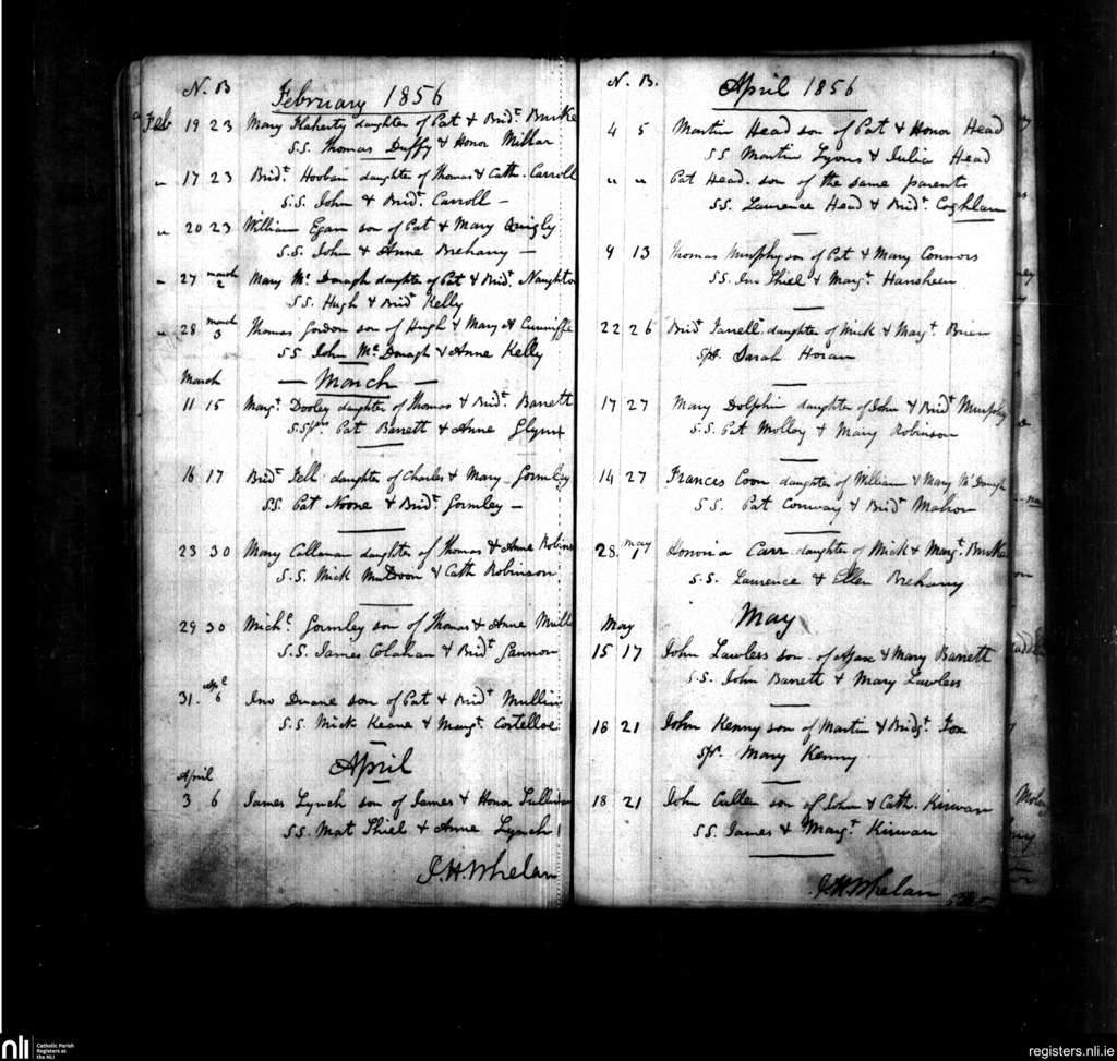 Tynagh; County of Galway; Diocese of Clonfert. Baptisms, Feb. 1856 to May 1856