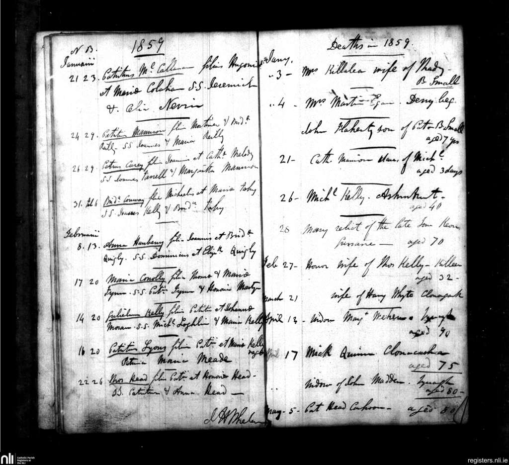 Tynagh; County of Galway; Diocese of Clonfert. Baptisms, Deaths, Jan. 1859 to May 1859