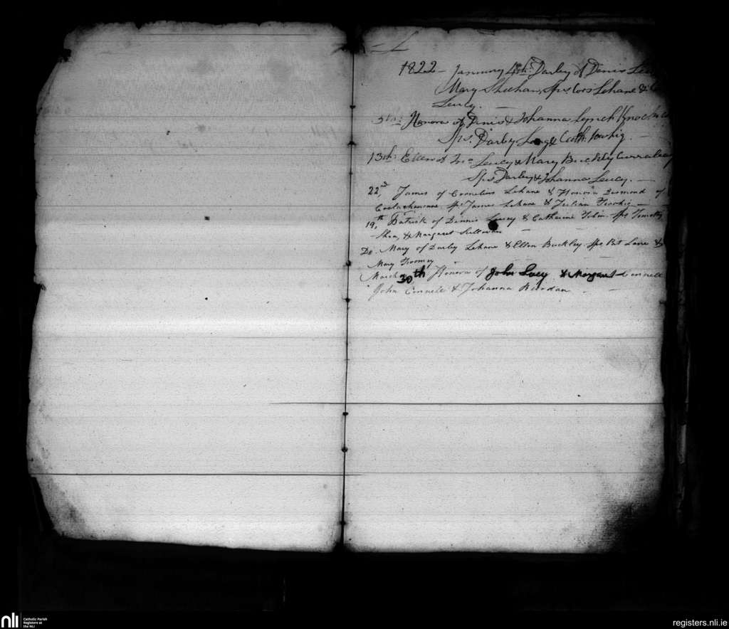 Clondrohid; County of Cork; Diocese of Cloyne. Baptisms, Jan. 1822 to Mar. 1822