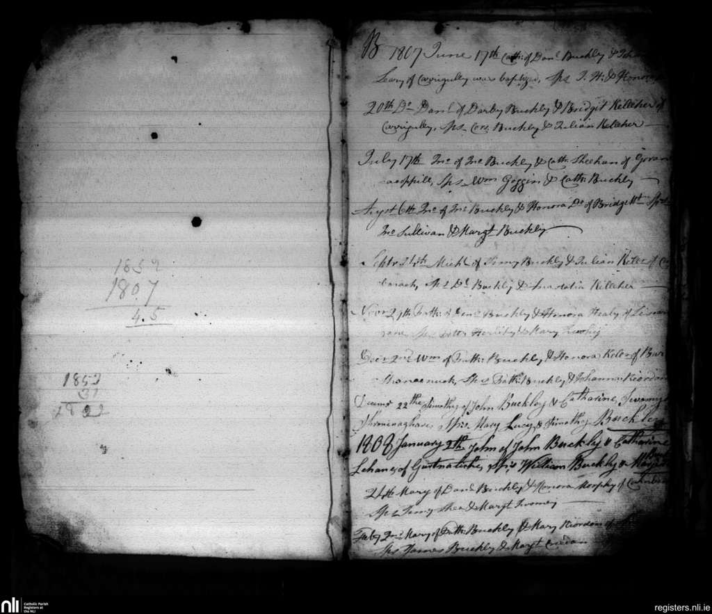 Clondrohid; County of Cork; Diocese of Cloyne. Baptisms, June 1807 to Feb. 1808