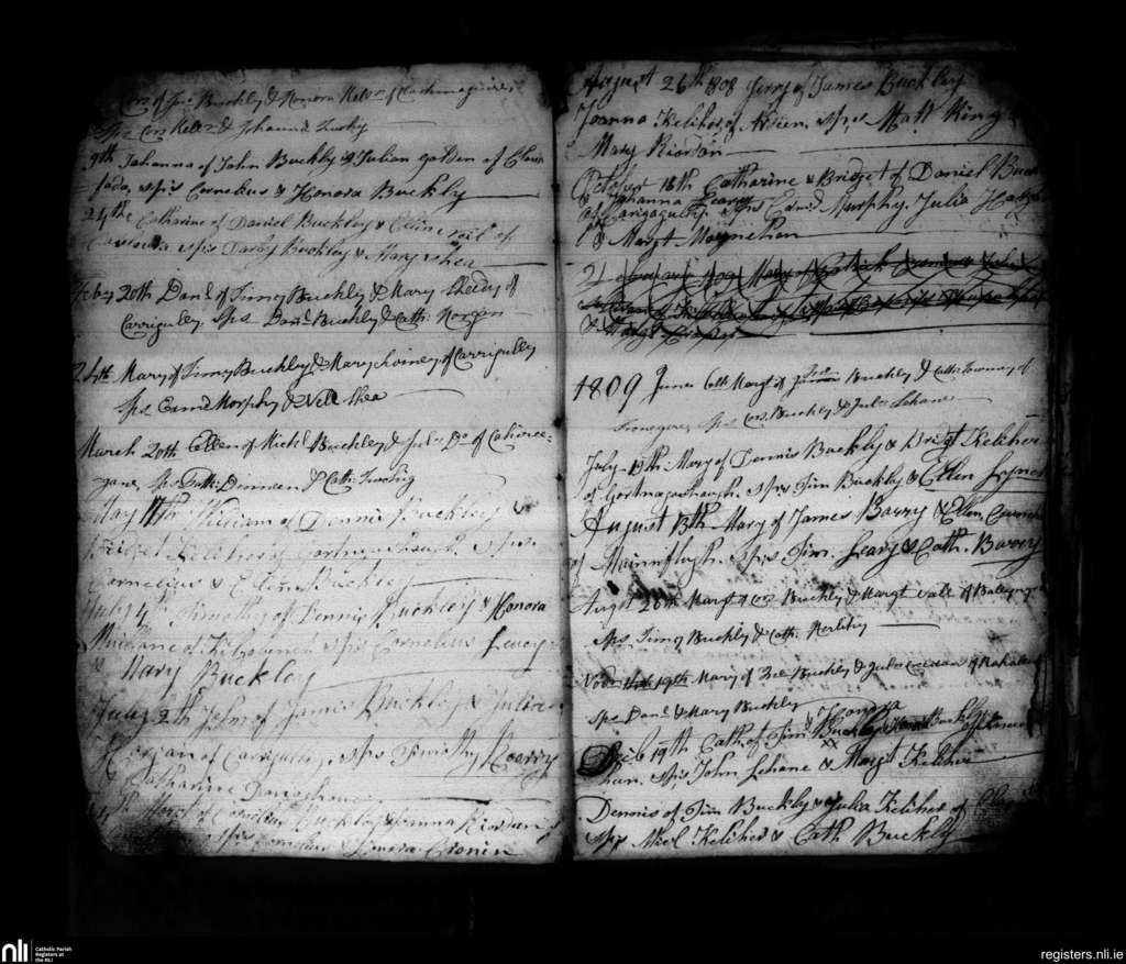 Clondrohid; County of Cork; Diocese of Cloyne. Baptisms, Feb. 1808 to Dec. 1809