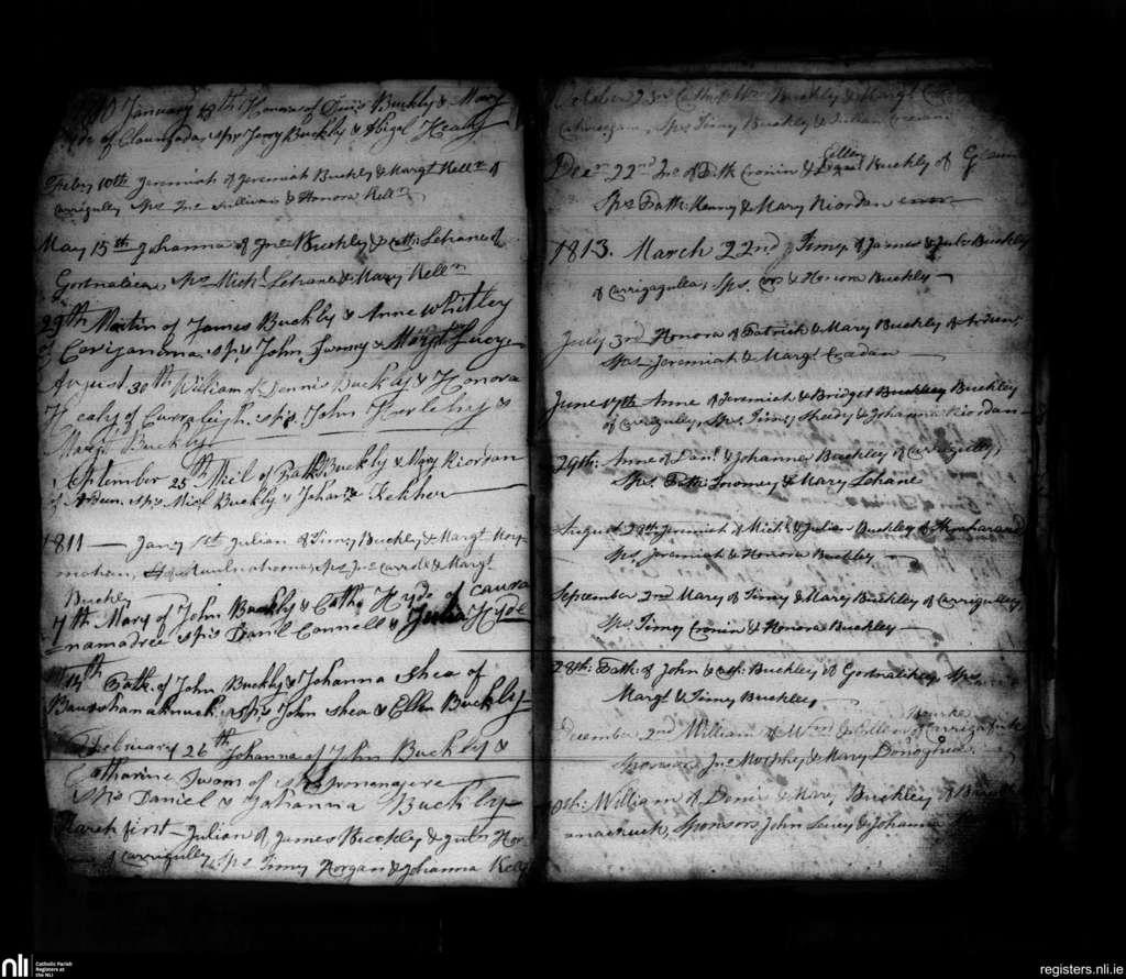 Clondrohid; County of Cork; Diocese of Cloyne. Baptisms, Jan. 1810 to Dec. 1813