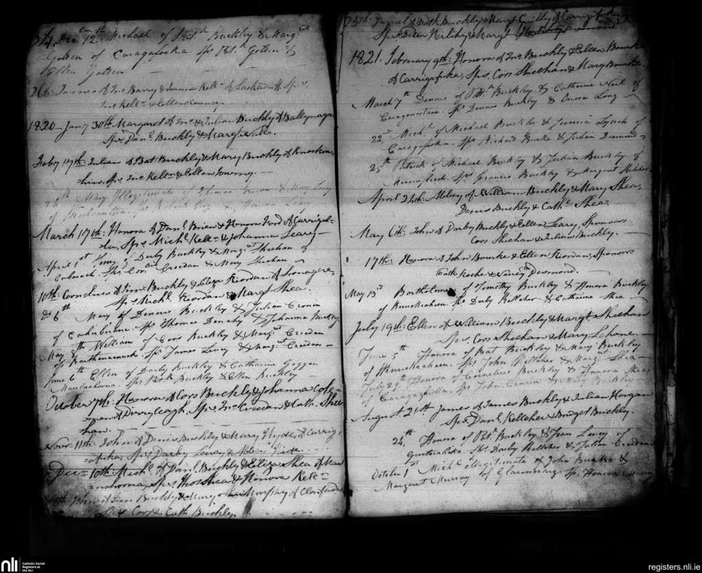 Clondrohid; County of Cork; Diocese of Cloyne. Baptisms, Dec. 1819 to Oct. 1821