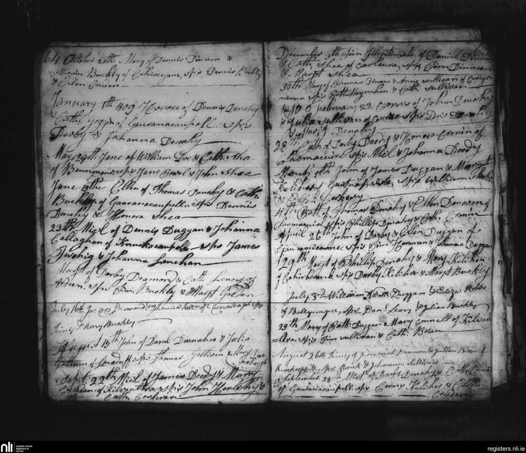 Clondrohid; County of Cork; Diocese of Cloyne. Baptisms, Oct. 1808 to Sep. 1810