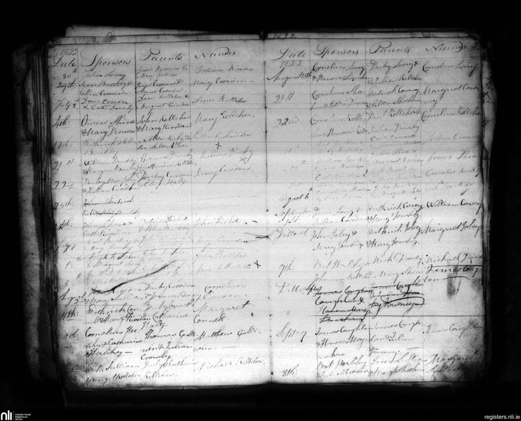 Clondrohid; County of Cork; Diocese of Cloyne. Baptisms, June 1822 to Sep. 1822