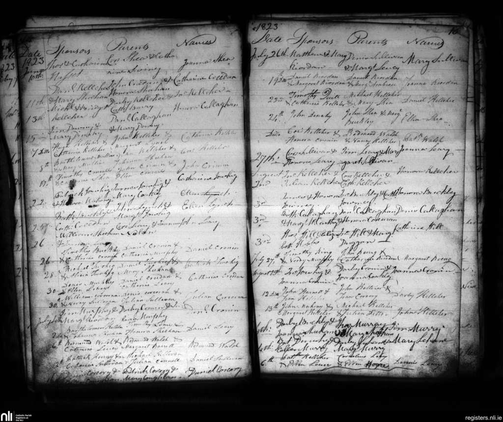 Clondrohid; County of Cork; Diocese of Cloyne. Baptisms, June 1823 to Aug. 1823