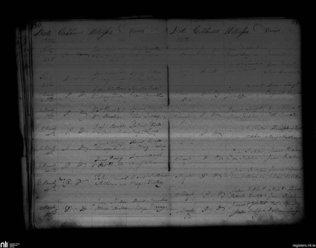 Clondrohid; County of Cork; Diocese of Cloyne. Marriages, Feb. 1832 to Mar. 1832