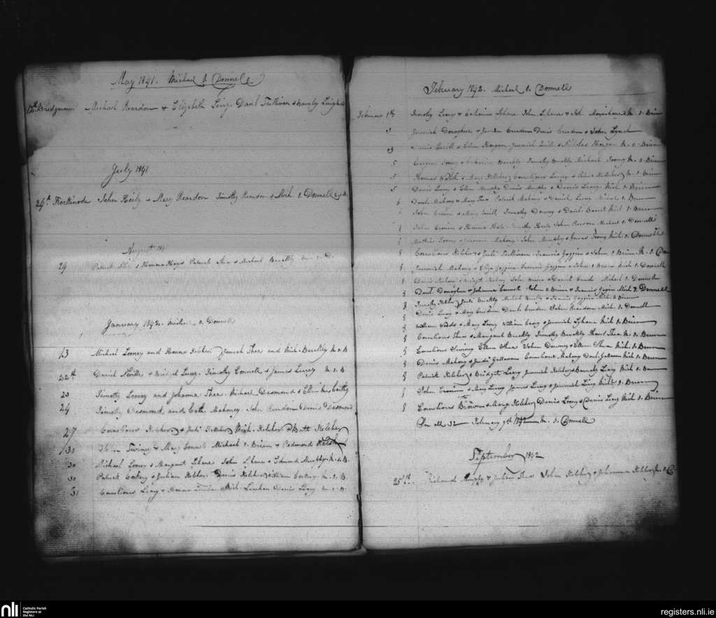 Clondrohid; County of Cork; Diocese of Cloyne. Marriages, May 1841 to Sep. 1842