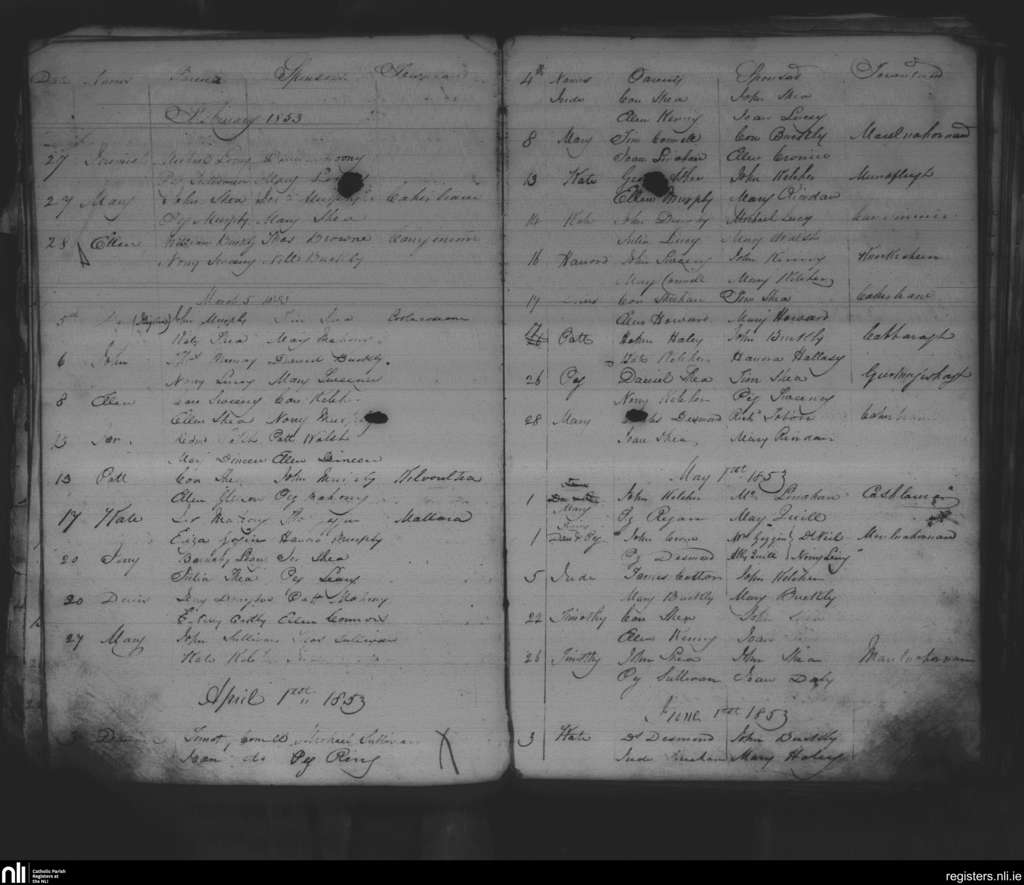 Clondrohid; County of Cork; Diocese of Cloyne. Baptisms, Feb. 1853 to June 1853