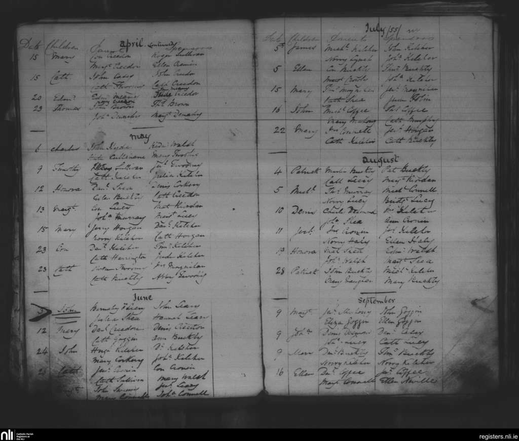 Clondrohid; County of Cork; Diocese of Cloyne. Baptisms, Apr. 1855 to Sep. 1855