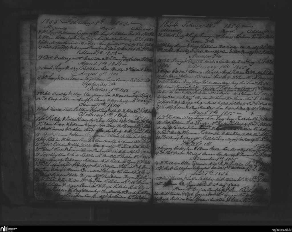Clondrohid; County of Cork; Diocese of Cloyne. Marriages, Feb. 1853 to Jan. 1856