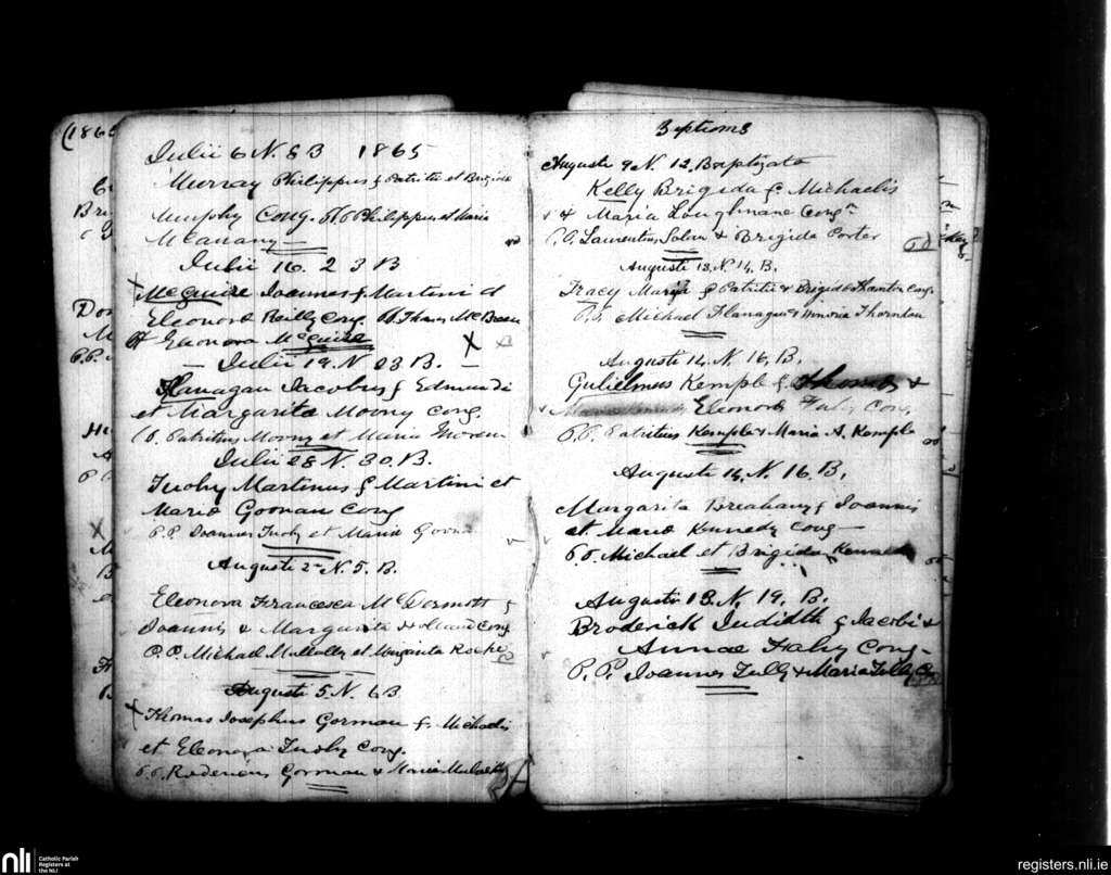 Woodford; County of Galway; Diocese of Clonfert. Baptisms, July 1865 to Aug. 1865