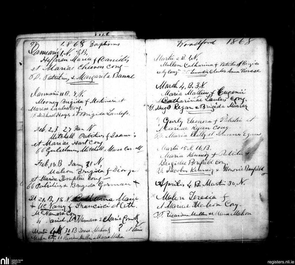 Woodford; County of Galway; Diocese of Clonfert. Baptisms, Jan. 1868 to Apr. 1868