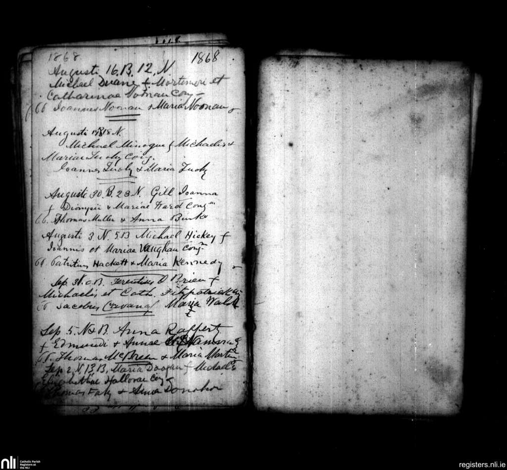 Woodford; County of Galway; Diocese of Clonfert. Baptisms, Aug. 1868 to Sep. 1868