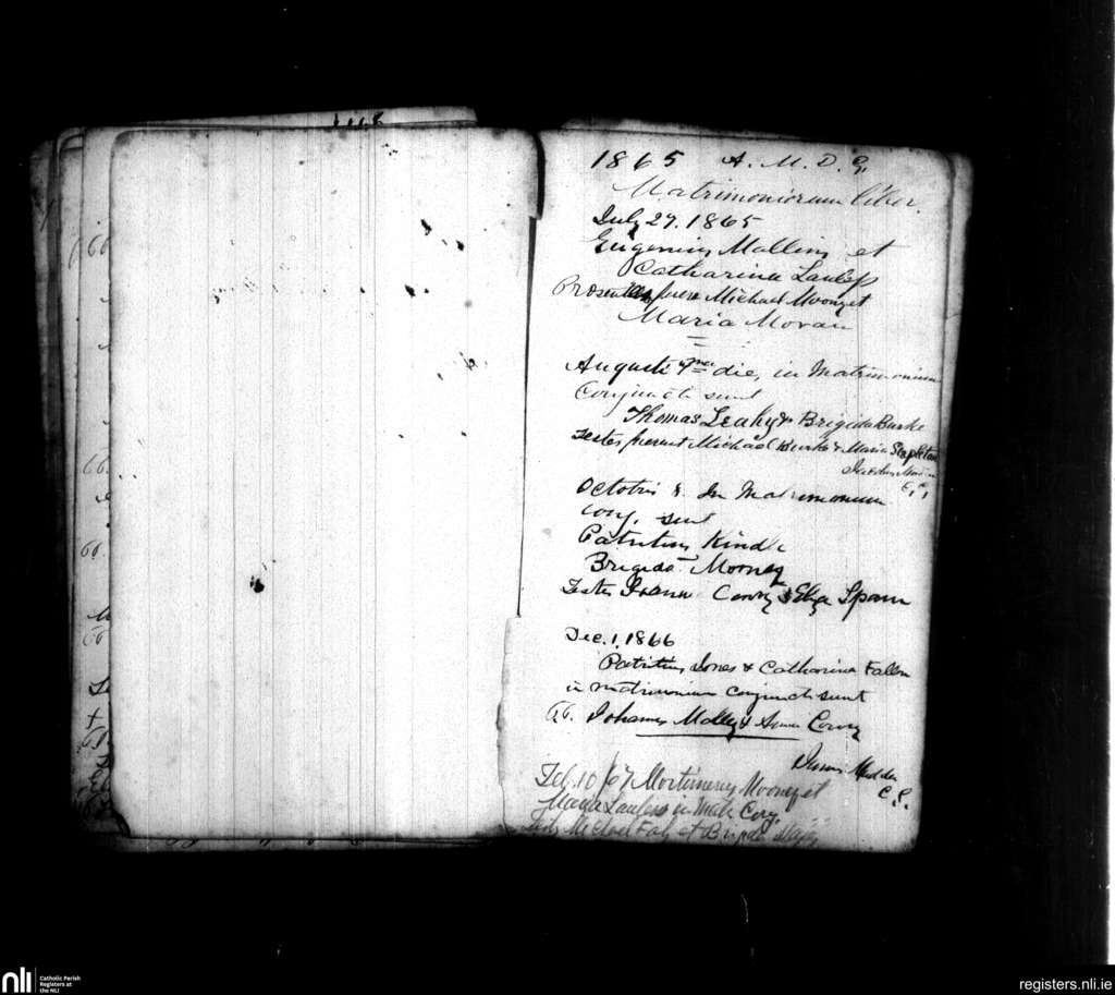 Woodford; County of Galway; Diocese of Clonfert. Marriages, July 1865 to Feb. 1867