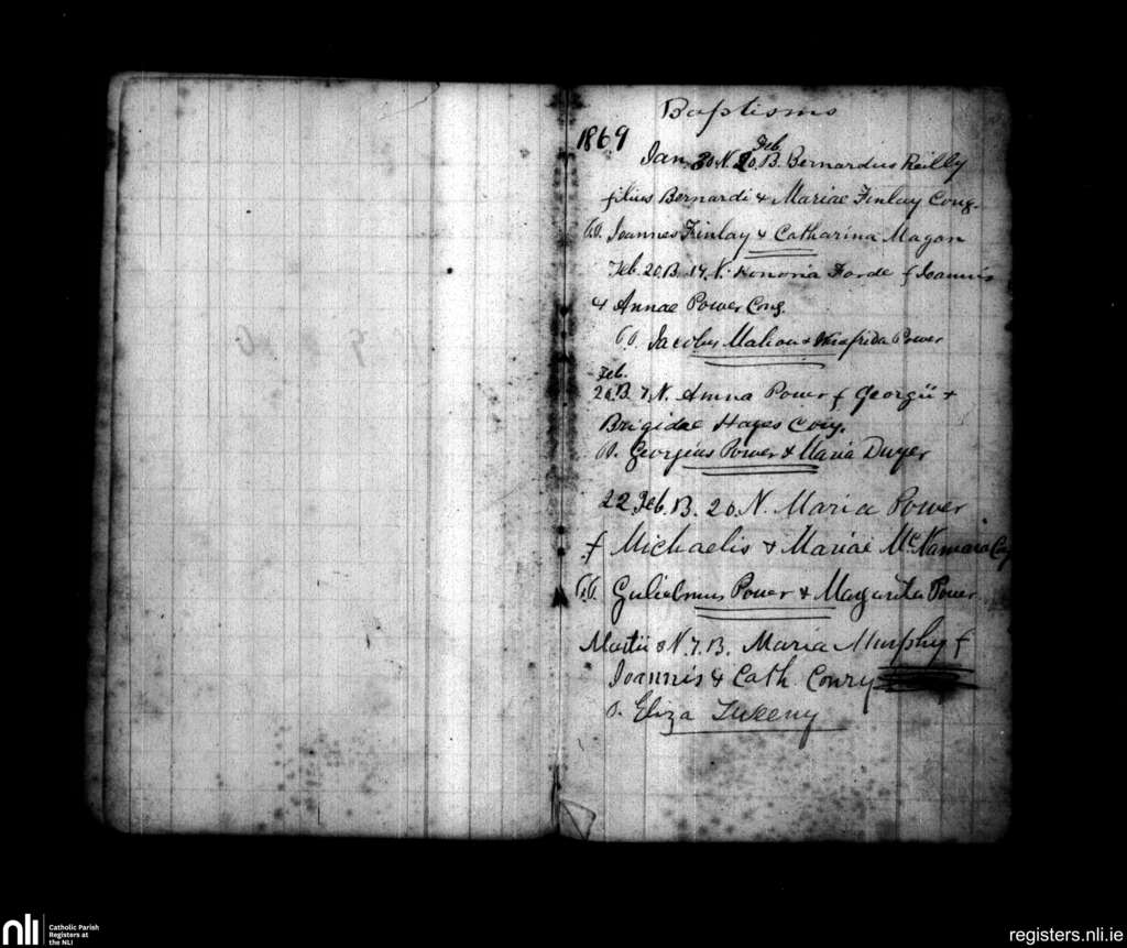 Woodford; County of Galway; Diocese of Clonfert. Baptisms, Jan. 1869 to Mar. 1869