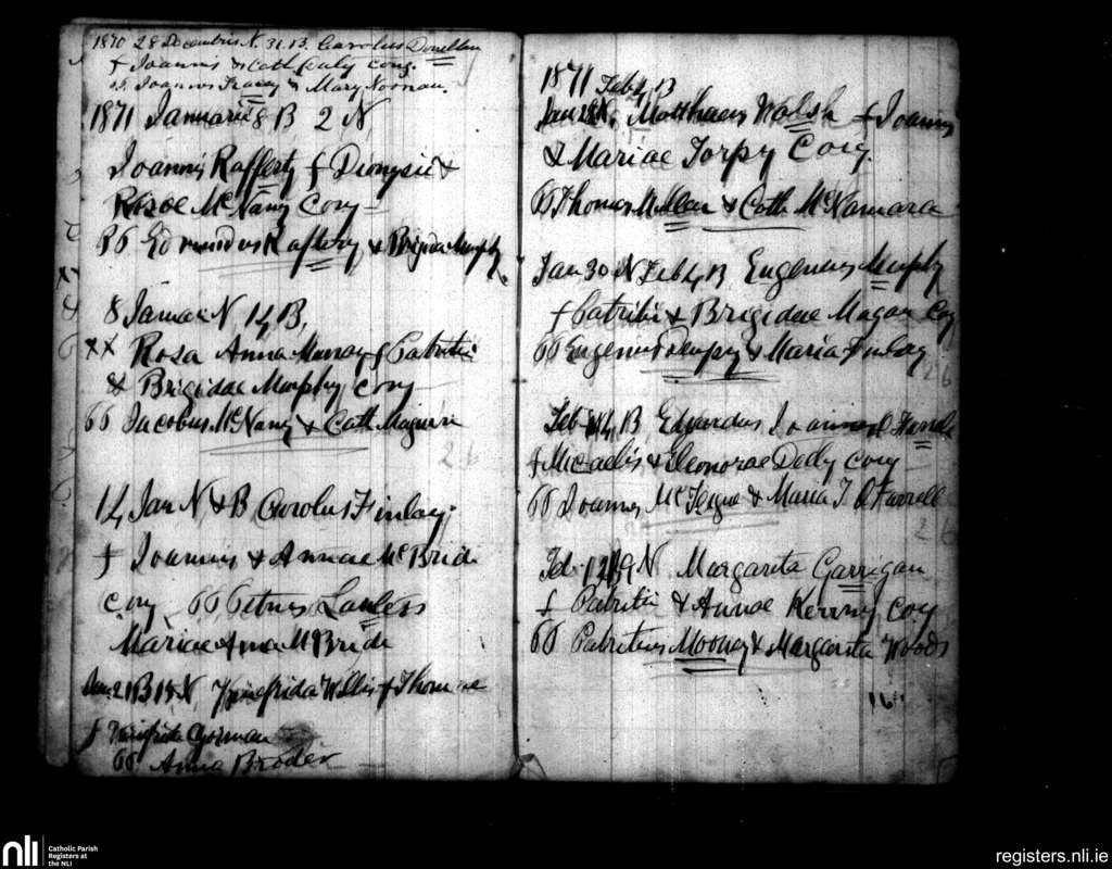 Woodford; County of Galway; Diocese of Clonfert. Baptisms, Dec. 1870 to Feb. 1871
