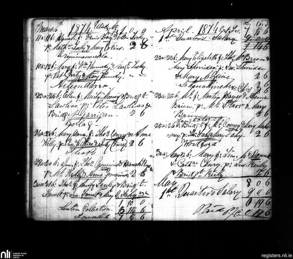 Woodford; County of Galway; Diocese of Clonfert. Baptisms, Mar. 1874 to May 1874