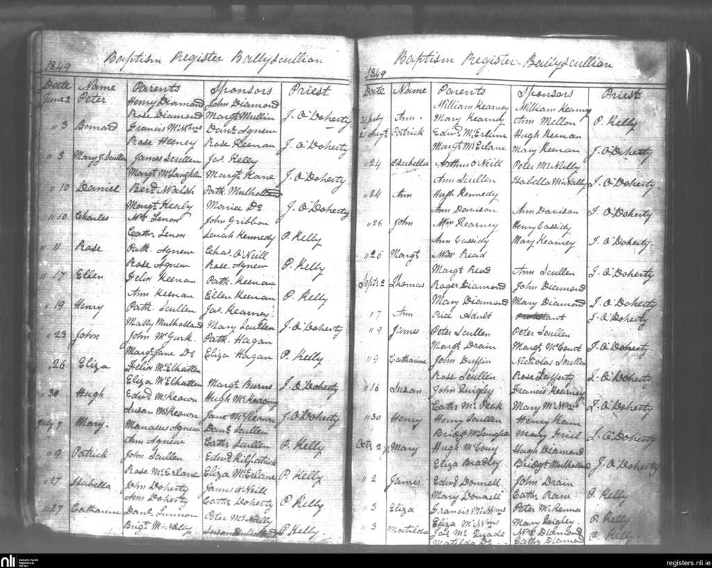 Ballyscullion; County of Derry; Diocese of Derry. Baptisms, June 1849 to Oct. 1849