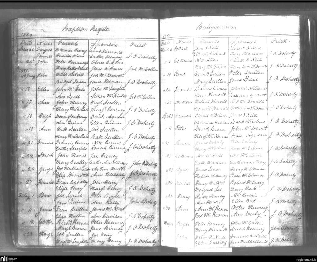 Ballyscullion; County of Derry; Diocese of Derry. Baptisms, Dec. 1850 to May 1851