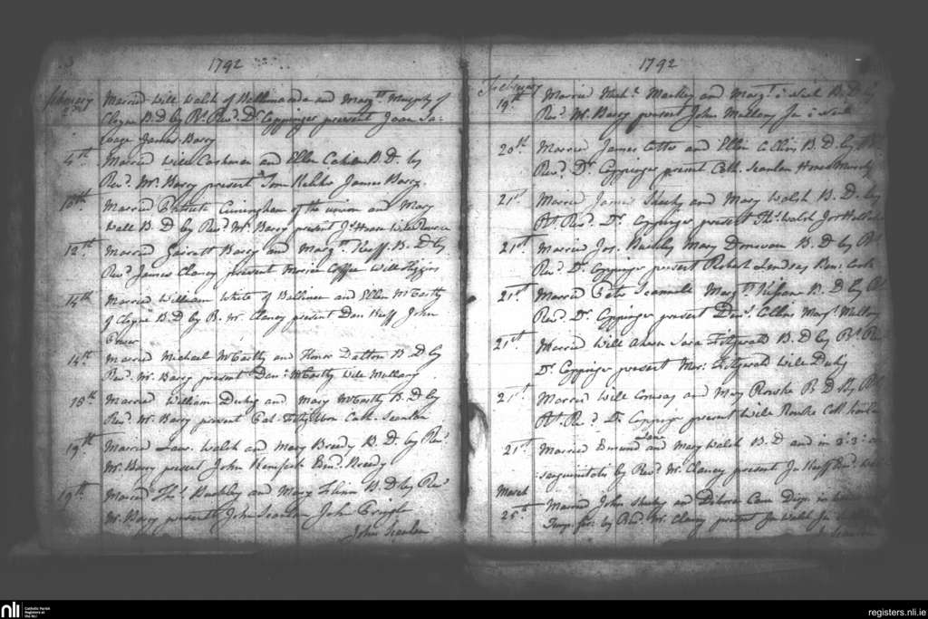 Cloyne; County of Cork; Diocese of Cloyne. Marriages, Feb. 1792 to Mar. 1792