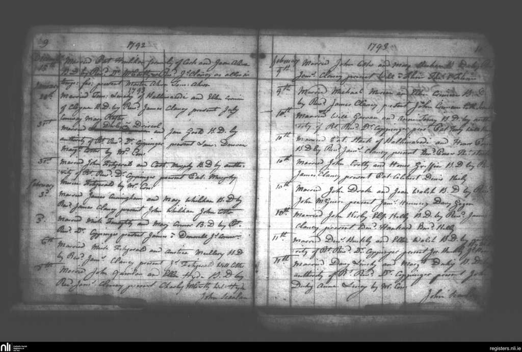 Cloyne; County of Cork; Diocese of Cloyne. Marriages, Dec. 1792 to Feb. 1793