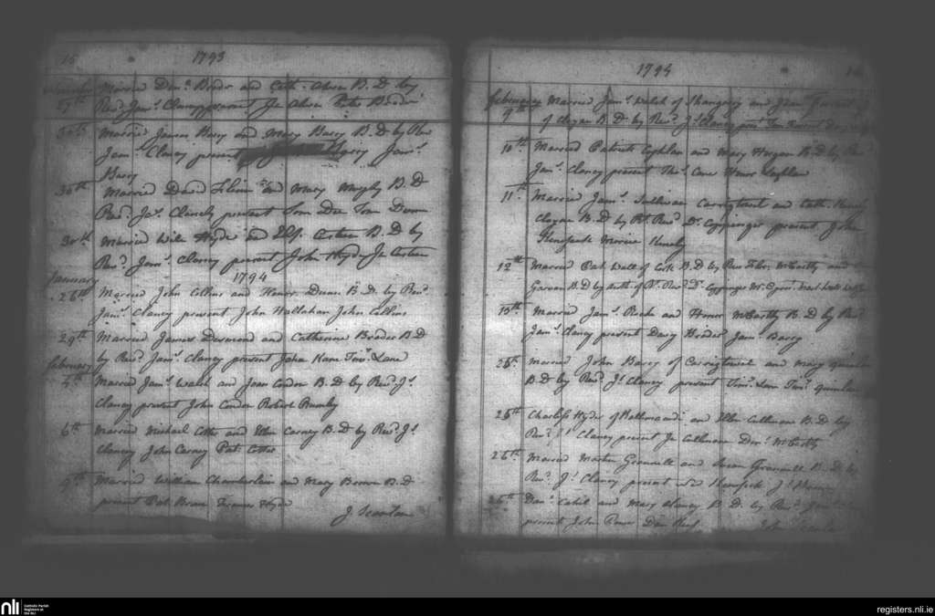 Cloyne; County of Cork; Diocese of Cloyne. Marriages, Nov. 1793 to Feb. 1794