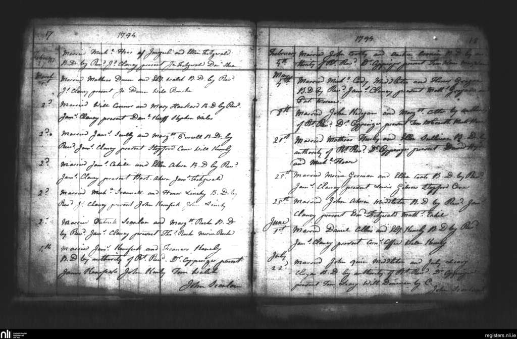 Cloyne; County of Cork; Diocese of Cloyne. Marriages, Feb. 1794 to July 1794