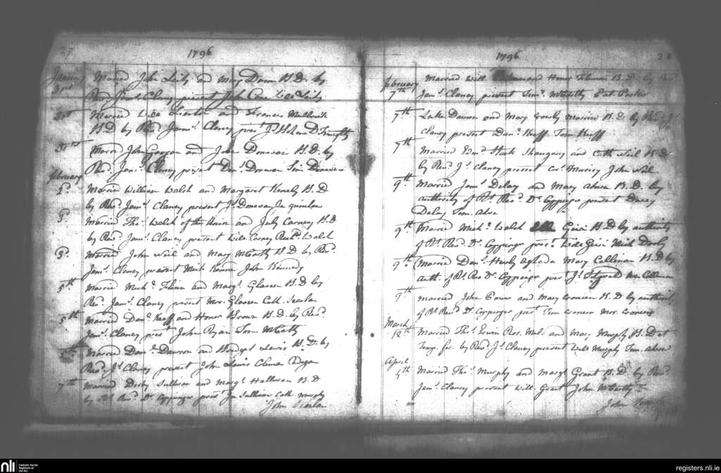 Cloyne; County of Cork; Diocese of Cloyne. Marriages, Jan. 1796 to Apr. 1796